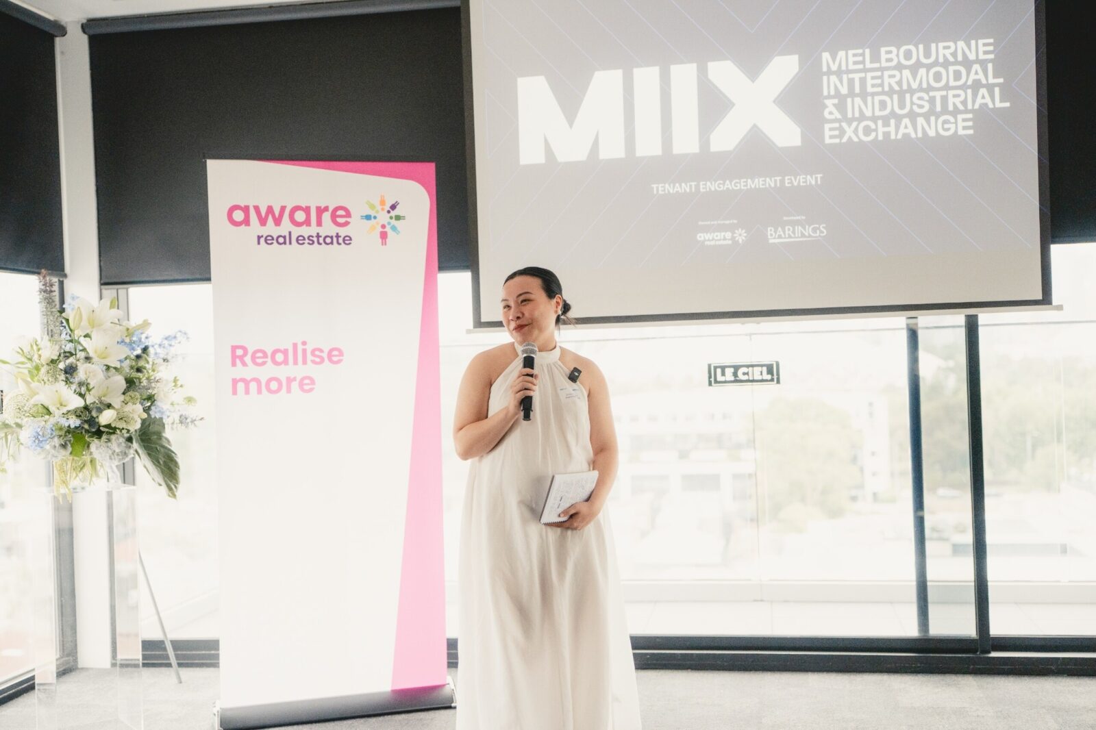 The event also featured insights from key project leaders. Tracey Whitby, CEO Aware Real Estate spoke to the importance of close collaboration with tenants in shaping successful, enduring precincts. Stephen O’Connor, Head of Industrial Development, Barings Real Estate Australia shared perspectives on the development strategy, while Julian Zeltinger, COO , Inermodal Terminal Company outlined the long-term vision for the Melbourne Intermodal Terminal (MIT).
